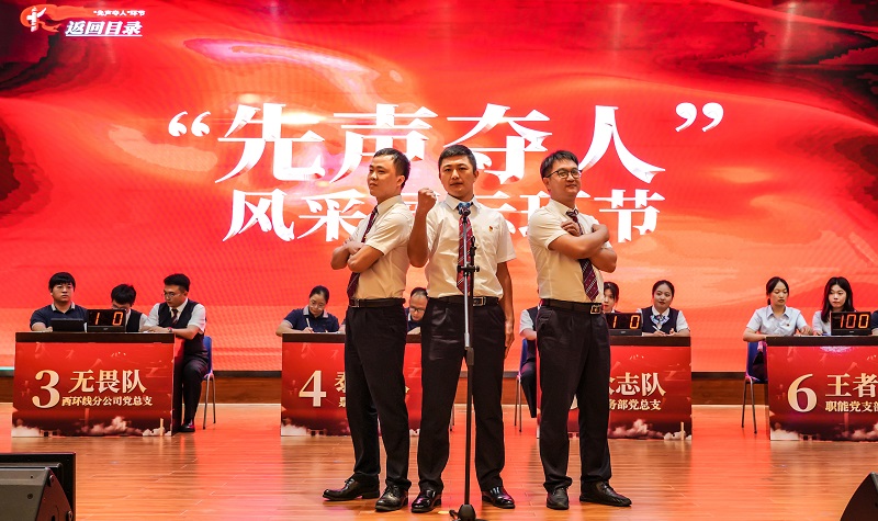 黨員輪訓(xùn)期間,為提升全司黨員對(duì)黨章黨規(guī)、制度條例的掌握深度和踐行力度,公司還舉辦了“篤學(xué)實(shí)干新征程 奮楫爭(zhēng)先譜新篇”知識(shí)競(jìng)賽活動(dòng)。競(jìng)賽涉及知識(shí)面廣,既涵蓋黨的二十大精神、黨章黨規(guī)黨史,又納入公司制度條例,吸引1600余名黨員參與線上初賽,最終8支隊(duì)伍24名選手角逐決賽,多維度檢驗(yàn)參賽人員的學(xué)習(xí)成果與水平。競(jìng)賽決賽共設(shè)“步步為贏”團(tuán)隊(duì)必答、“爭(zhēng)分奪秒”團(tuán)隊(duì)搶答、“一觸即發(fā)”風(fēng)險(xiǎn)競(jìng)答、“尖峰對(duì)決”加時(shí)搶答和“龍爭(zhēng)虎斗”團(tuán)隊(duì)代表個(gè)人賽五個(gè)環(huán)節(jié),其中線索搶答、紅歌填詞、視頻競(jìng)猜等創(chuàng)新答題形式,既考驗(yàn)了參賽選手的知識(shí)儲(chǔ)備,又增強(qiáng)了活動(dòng)趣味性,臺(tái)下觀眾與臺(tái)上選手一同答題、齊唱紅歌,在一次次“手速”和“腦力”的碰撞中,現(xiàn)場(chǎng)氣氛熱烈、高潮迭起。