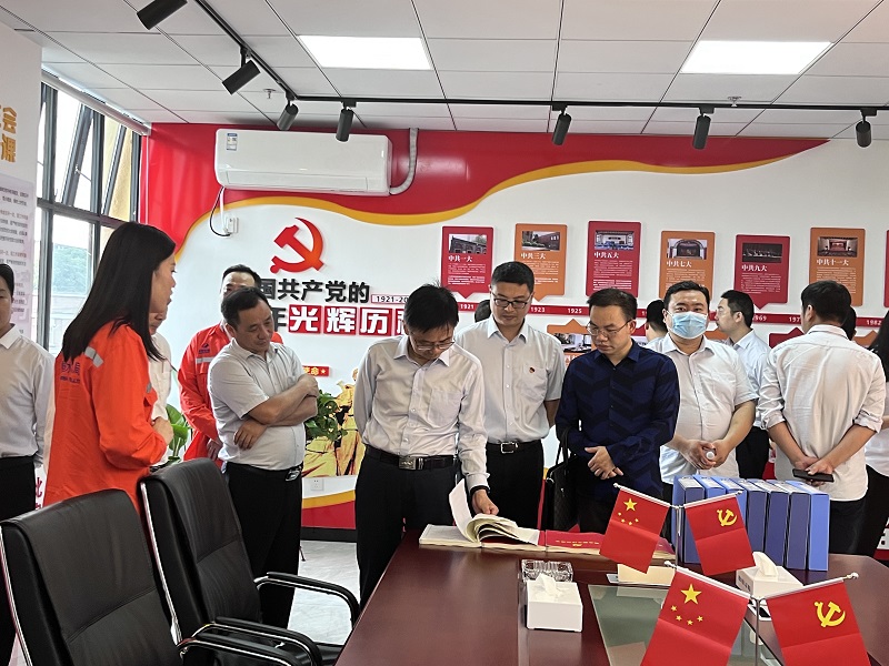 在7號(hào)線二標(biāo)段項(xiàng)目部,尹雙紅實(shí)地觀摩了黨建活動(dòng)室、文化長(zhǎng)廊等黨建陣地,詳細(xì)了解了“支部建在項(xiàng)目上”黨建品牌的創(chuàng)建和培育推廣等方面的工作情況。