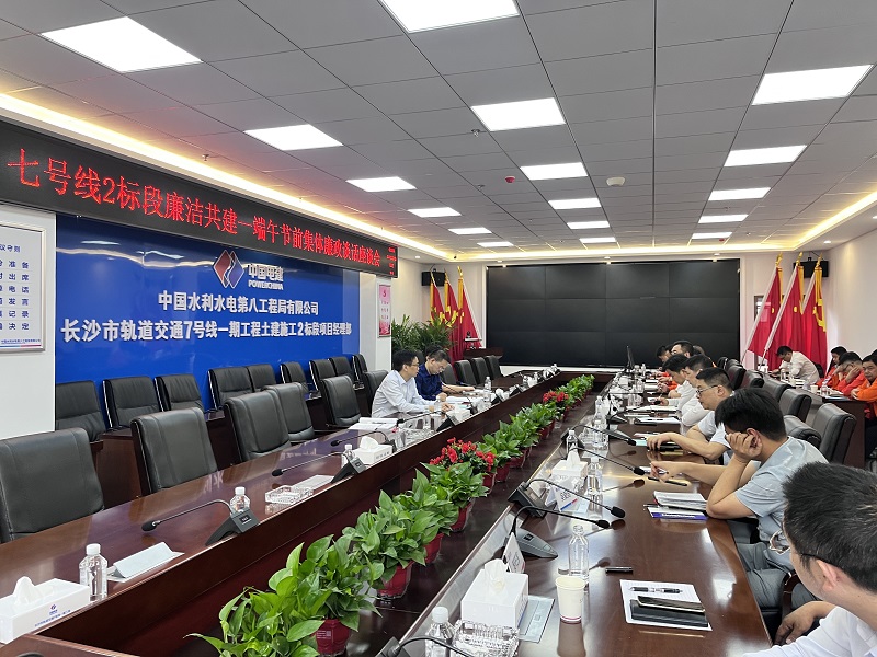 5月25日下午,集團(tuán)黨委委員、紀(jì)委書(shū)記、監(jiān)察專員尹雙紅帶隊(duì)赴7號(hào)線二標(biāo)段開(kāi)展廉潔共建暨端午節(jié)前集體廉政談話活動(dòng),集團(tuán)紀(jì)檢監(jiān)察部、五號(hào)線建設(shè)公司、水電八局等單位負(fù)責(zé)人參加。