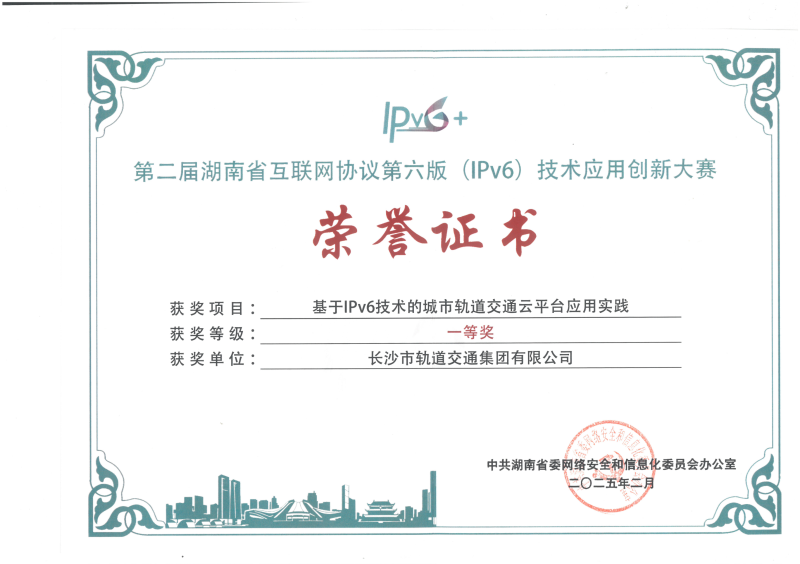 近日,第二屆湖南省互聯(lián)網(wǎng)協(xié)議第六版(IPv6)技術(shù)應(yīng)用創(chuàng)新大賽頒獎(jiǎng)儀式在長(zhǎng)沙舉辦。省委宣傳部副部長(zhǎng)、省委網(wǎng)信辦主任劉學(xué)出席會(huì)議并講話(huà),省委網(wǎng)信辦副主任郭天保主持會(huì)議。長(zhǎng)沙軌道基于IPv6技術(shù)的城市軌道交通云平臺(tái)應(yīng)用實(shí)踐項(xiàng)目,經(jīng)初賽、決賽評(píng)審的激烈角逐,榮獲一等獎(jiǎng),成為湖南省內(nèi)重點(diǎn)行業(yè)IPv6+技術(shù)落地推廣的典范,同時(shí)也為本地交通行業(yè)下一代骨干承載網(wǎng)發(fā)展提供了寶貴的經(jīng)驗(yàn)參考。