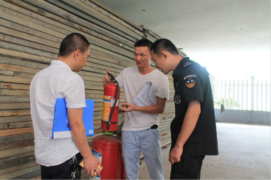 在河西杜鵑路橋下倉(cāng)庫(kù)項(xiàng)目,物業(yè)安全生產(chǎn)專(zhuān)干仔細(xì)查看了消防器材是否符合標(biāo)準(zhǔn),并指導(dǎo)項(xiàng)目安保兼現(xiàn)場(chǎng)安全員如何正確使用消防器材。