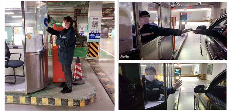 在火車南站東、西廣場(chǎng),戰(zhàn)“疫”在前線的軌道物業(yè)人特殊時(shí)期升級(jí)保潔作業(yè)標(biāo)準(zhǔn),盡全力做好管理區(qū)域內(nèi)清潔、消毒、殺菌工作,以更加主動(dòng)、更加認(rèn)真、更加嚴(yán)格的態(tài)度做好停車場(chǎng)安防工作,最大限度切斷病毒的傳播途徑。衛(wèi)生間、電梯間等易污染部位實(shí)施每小時(shí)一次滅菌殺毒處理;東、西廣場(chǎng)上和停車場(chǎng)顯眼位置設(shè)置7個(gè)廢棄口罩投放專用垃圾桶;合理排班保障24小時(shí)不限次進(jìn)行全區(qū)域內(nèi)的保潔和消殺工作;在衛(wèi)生間及主要通道粘貼防疫控疫相關(guān)知識(shí)宣傳告示……東、西廣場(chǎng)停車場(chǎng)3623個(gè)車位,安保隊(duì)員們逐一排查湖北籍牌照車輛,對(duì)場(chǎng)內(nèi)停放的28臺(tái)湖北籍牌照車輛核實(shí)入場(chǎng)時(shí)間、上報(bào)主管部門、車體消毒、重點(diǎn)關(guān)注;每天,值守在入口的保安隊(duì)員對(duì)每臺(tái)入場(chǎng)車輛的司乘人員進(jìn)行體溫檢測(cè),對(duì)未戴口罩人員進(jìn)行勸導(dǎo),幫助市民旅客提高防范意識(shí)。